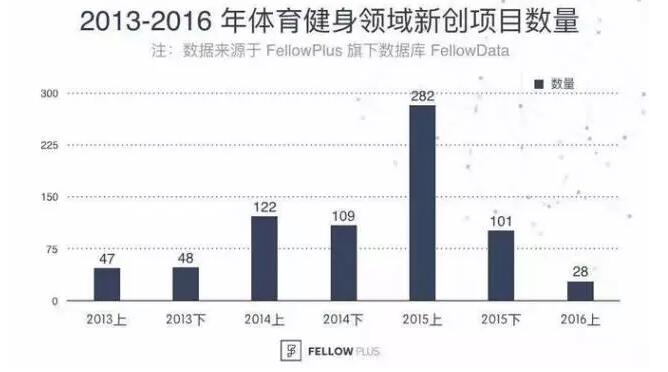 另外,随着46号文件的出台,体育产业中的创业数量开始激增。但随着时间的推移,在度过非理性时期后,创业者开始出现分化。上图数据显示,2015年体育产业中的创业数量到达了一个峰顶,但在下半年就出现了明显的下滑,2016年是一个低谷,表明市场越来越趋于成熟,商业模式和团队竞争力成为创业公司能否存在下去的必要条件。